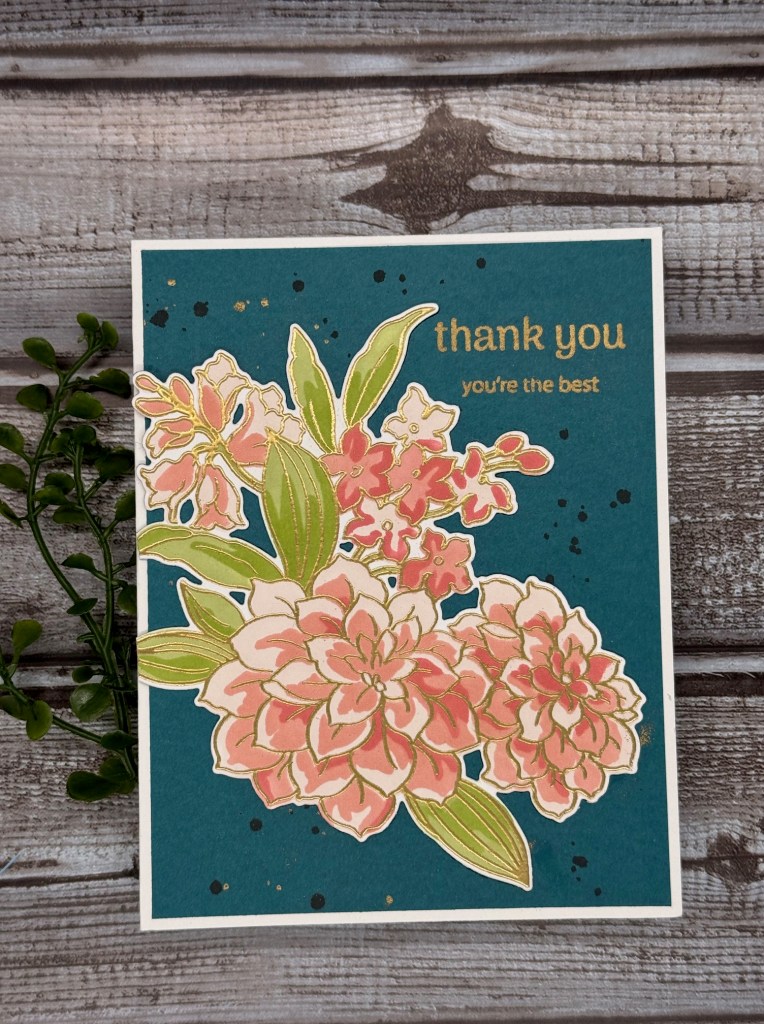I have really fallen in love with how gold embossed elements look on darker backgrounds, so I decided to experiment with gold embossing powder.