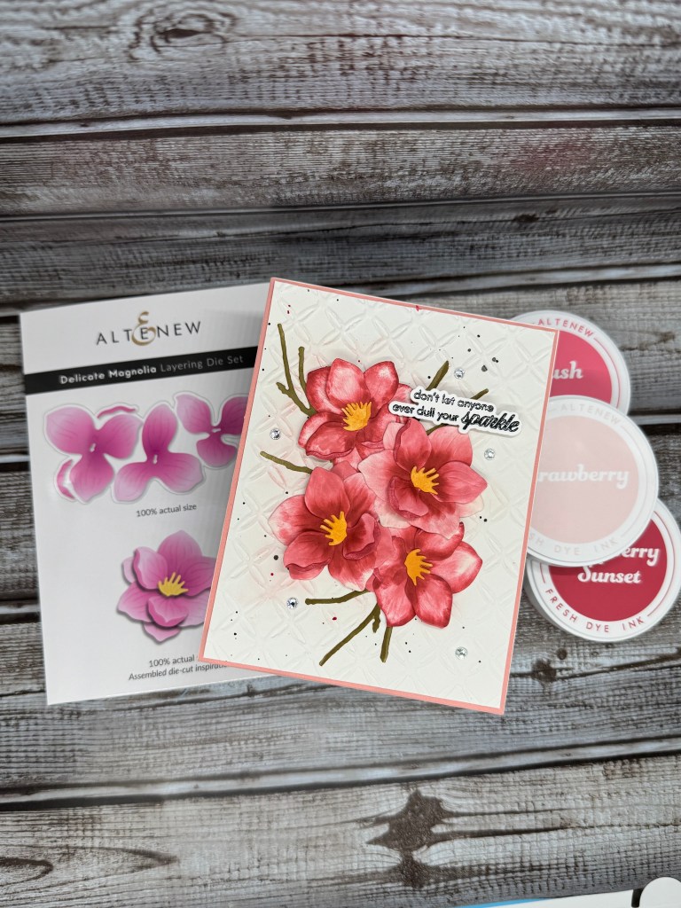 I thought the color palette for this month’s challenge was very pretty. The Altenew blog post can be found here: https://blog.altenew.com/april-2025-inspiration-challenge-pretty-in-pink-handmade-cards/